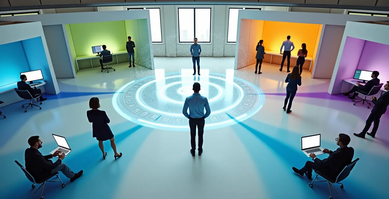 Wie die Visualisierung zeigt, geht es darum, einen Moment des gemeinsamen Verständnisses zu schaffen. Ihre Autorität wächst nicht, indem Sie Entscheidungen diktieren, sondern indem Sie die Struktur schaffen, in der das Team selbst zu besseren, gemeinsamen Entscheidungen findet. Sie moderieren den Prozess, nicht die Menschen. Durch die Etablierung solcher neutraler Kommunikations-Frameworks positionieren Sie sich als unverzichtbarer Knotenpunkt im Projektnetzwerk und sichern Ihre Autorität durch Kompetenz statt durch Hierarchie.